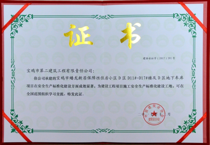全國安全生產(chǎn)標(biāo)準(zhǔn)化建設(shè)工地(寶雞市蟠龍新居保障性住房小區(qū))