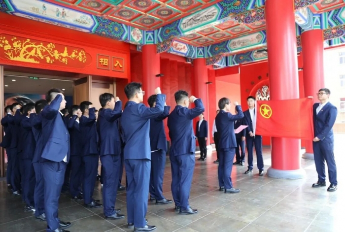 天水中南錦時住宅項目(安置區(qū)北區(qū))項目部團員青年達云飛帶領(lǐng)大家重溫入團誓詞。鏗鏘有力的誓詞回蕩在現(xiàn)場,激勵著每一位團員青年時刻銘記團員使命,不忘初心,砥礪前行。